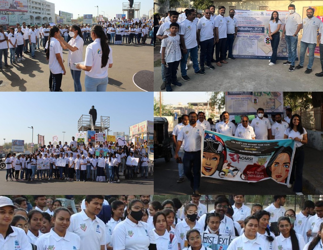 Department Of Oral and Maxillofacial Surgery, Narsinhbhai Patel Dental College and Hospital, NSS of Sankalchand Patel university organized an “OMFS Walkathon”- A road rally for creating awareness among the general public regarding Road Safety and Traffic Rules Awareness along with the Emergency Management of Road Traffic Accident Cases in Mehsana on 12th February, 2023. This initiative was made because with the passing time, road traffic has increased and the traffic rules are not being followed which leads to numerous accidents and loss of lives. Around 360 people participated in this rally. The walkathon started from Biladi Baugh where Our Famous RJ Mamta from Our radio partner Top FM mehsana joined for the commencement of the rally, there was enthusiastic contribution by all the participants in form of various slogans and posters. Then at Radhanpur Cross Road students performed a skit regarding Traffic rules and road safety and at the end at Modhera Cross road, other skits for Role of Oral and maxillofacial surgeon and emergency management of accident patient were performed. We covered a stretch of approximately 4 Kms. So, by this event we made the general public aware regarding steps to be taken to Save a Life in such compromised situations. We hope that this effort from our side succeeded in making a difference in the society. Dr.Anil Managutti HOD, Dept of OMFS, NPDCH and Dean External Affairs thanked Prakash Patel Sir, President, SPU, D.J Shah sir, Provost SPU and Dr.Vilas Patel, Dean NPDCH for their great support to make this event possible. He also thanked Big FM Mehsana and RJ Mamta for being a part of this. Special thanks to Shanku’s Hospital, Rotary club visnagar for their contribution.