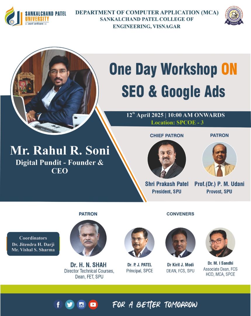 Join us for an exclusive One-Day Workshop on SEO & Google Ads organized by the Department of Computer Application (MCA)